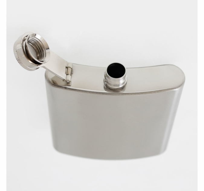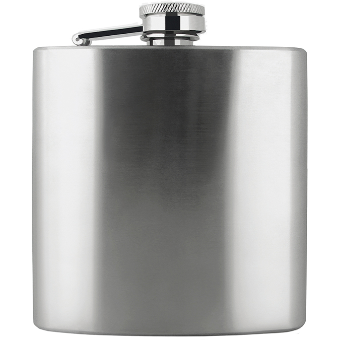Licorera de acero inoxidable de 200 ml. Pequeña tapa con cierre de rosca. Se entrega en caja de cartón individual. Certificada bajo estándares de la FDA. Lavar antes de usar.